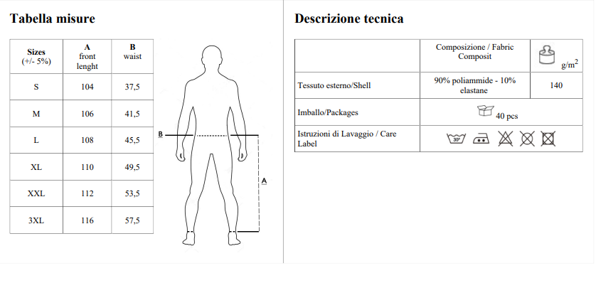 CORRISPONDENZA TG.: S42/44 M46/48 L50/52 XL54/56 XXL58/60 3XL62/64