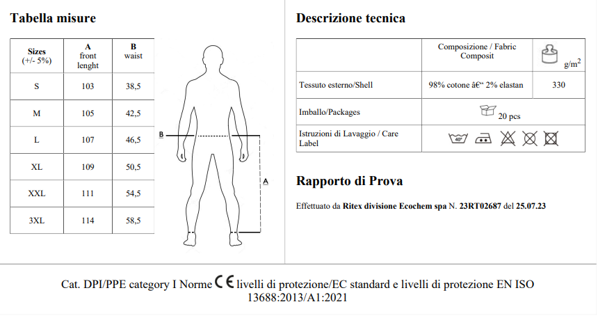 CORRISPONDENZA TG.: S42/44 M46/48 L50/52 XL54/56 XXL58/60 3XL62/64