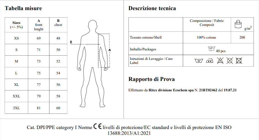 N.B. Si prega di lavare il capo prima di indossarlo la prima volta per conservarne la qualità nel tempo